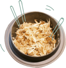 這一碗農村傳統炊飯裡,食材依序炒製把香氣匯聚在鍋內,才把米加入拌炒,讓食材的香氣、鮮味包覆並融入米粒,燜煮之後掀開飯鍋,香氣引發食慾,晶瑩剔透的米飯,每一口都有台灣在地的香氣。