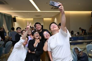 各界媒體報到完畢後,氣氛熱絡地互相寒暄並開始自拍紀念