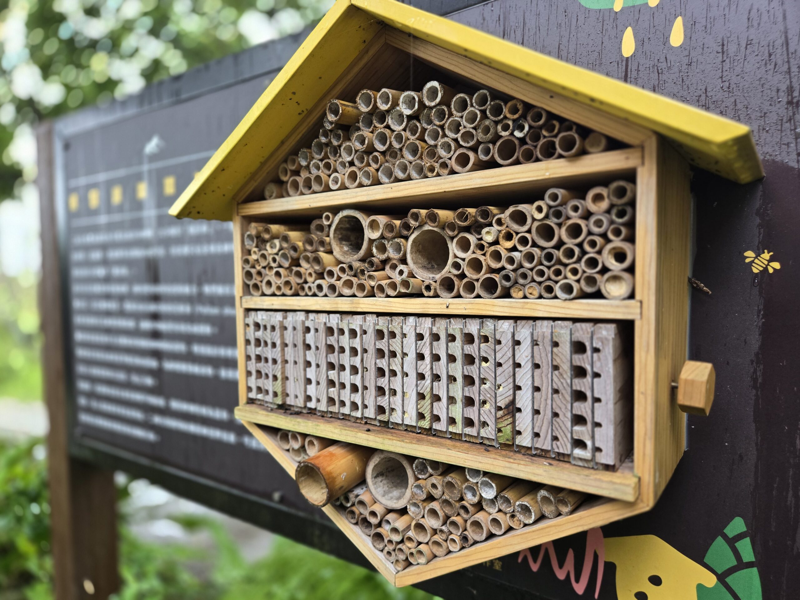 農場利用廢棄竹材打造「獨居蜂旅館」,提供溫和的獨居蜂築巢育幼,也讓遊客能近距離觀察自然生態。光臘樹則吸引獨角仙前來吸食樹液,夏天常可見獨角仙、虎頭蜂與蝴蝶同時覓食的有趣畫面。