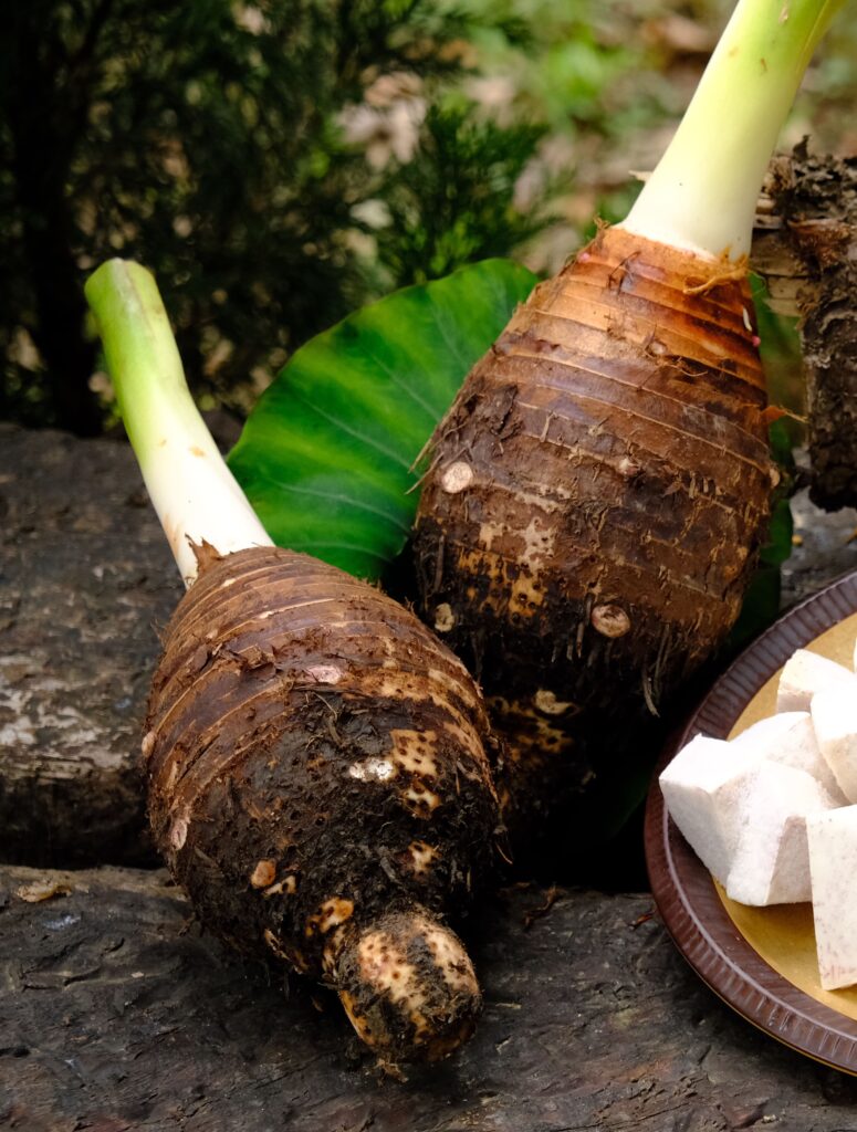若說起芋頭產地,許多人先想到的是大甲,但其實苗栗公館芋頭產量甚至僅次於高雄大樹。為了讓更多人了解公館芋的特色,「茅鄉亭」除了介紹農場所種植的檳榔心芋栽種方式、成長過程以及採收期外,同時將採收下的芋頭,做成保存時間較長,使用真空包裝的芋頭角,即使不在產季內,也能夠吃得到美味可口的芋頭。